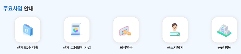 근로복지공단 토탈서비스 홈페이지 주요 서비스 구성