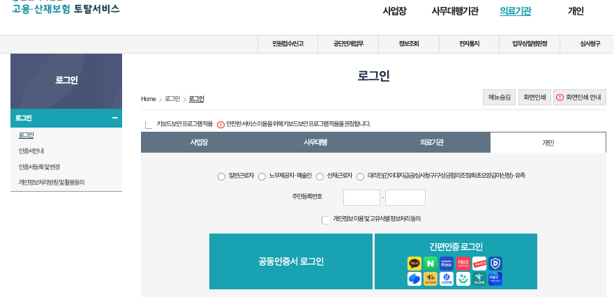 근로복지공단 토탈서비스 홈페이지 이용 시 주의 사항