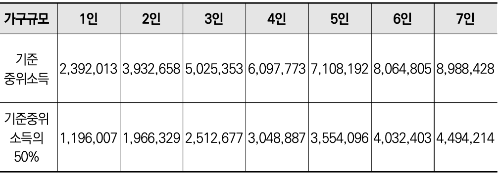 | 가구원 수 | 기준중위소득 50% |