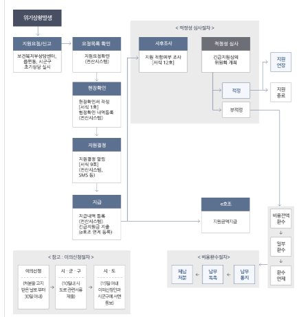 - 복지로 → '서비스 찾기'에서 긴급복지 항목 조회