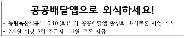 2. 서로 다른 공공배달앱에서의 주문 실적은 합산되지 않으므로, 반드시 같은 앱에서 2만 원 이상 주문을 3회 이상 해야 쿠폰을 받을 수 있습니다.
