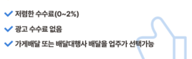 일반적으로 민간 배달앱은 중개 수수료나 광고비, 배달료 등으로 인해 업주에게 적지 않은 부담을 줄 수 있습니다. 하지만 공공배달앱은 이러한 부담을 줄여주고 소상공인의 실질적인 수익을 높여주는 구조를 만들어 가고자 합니다.