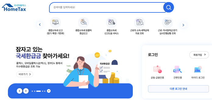 - 홈택스 홈페이지 접속 → 로그인 → 마이홈택스 → 연말정산/종합소득세 신고 메뉴