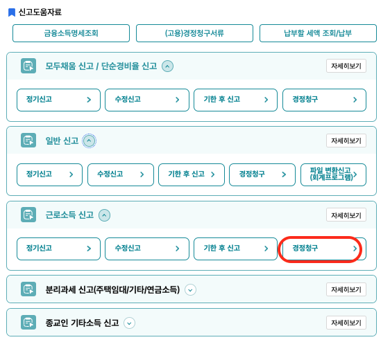 - 홈택스 로그인 → 신고·납부 → 경정청구 → 정정신고서 제출