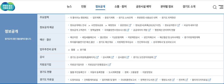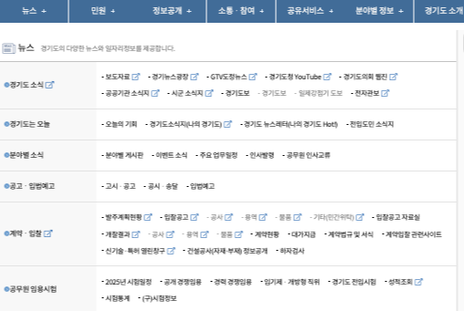입찰과 채용 및 예산 같은 행정 정보도 자세하게 안내되어 안심하고 확인할 수 있습니다. 경기도민이 행정에 직접 의견을 전달할 수 있는 소통의 창구로도 중요한 역할을 하고 있습니다.
