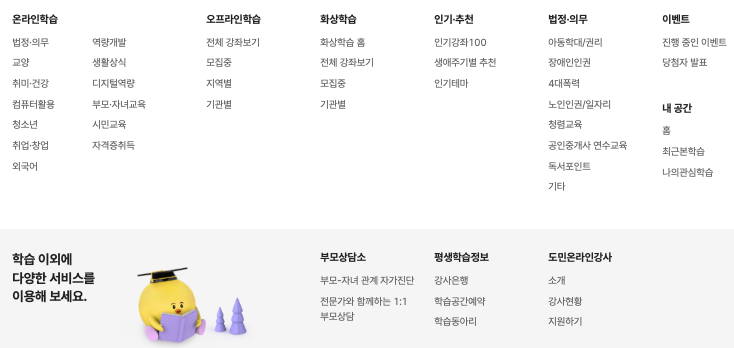 경기도 평생학습포털 지식 GSEEK 주요 카테고리