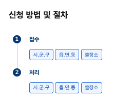 - 가까운 읍·면·동 주민센터에서 신청 가능 (관할지 아니라도 가능)