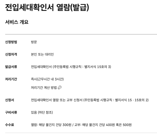 3. 외국인 또는 외국국적 동포는 전입세대열람원 발급 대상에 해당하지 않습니다. 주민등록상 해당 주소에 세대주 또는 동거인으로 등록되지 않은 경우에는 발급을 받을 수 없습니다.