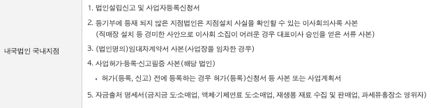 - 등기되지 않은 지점을 운영하는 경우 추가 서류 제출이 필요함