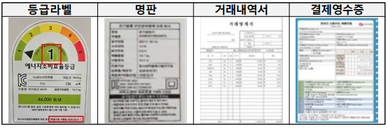 A. 영수증과 에너지등급 라벨 사진 및 제조번호가 적힌 명판 사진 등 세 가지를 준비해야 합니다.