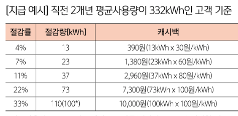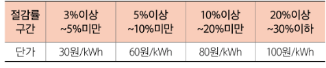 - 절감률 구간에 따라1kWh당 30원~100원 차등 지급