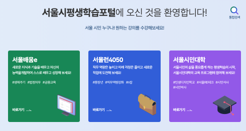 서울시 평생학습포털은 배우고자 하는 모두가 쉽게 이용할 수 있는 구조와 알찬 콘텐츠를 제공합니다.