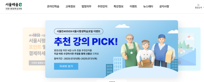 - 배움: 서울배움e 과 서울런4050 및 시민대학, 열린강좌 등 다양한 강좌 제공