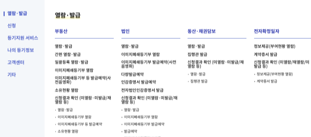 인터넷 등기소는 메뉴가 잘 정리되어 있어 처음 이용하는 사람도 쉽게 사용할 수 있습니다.