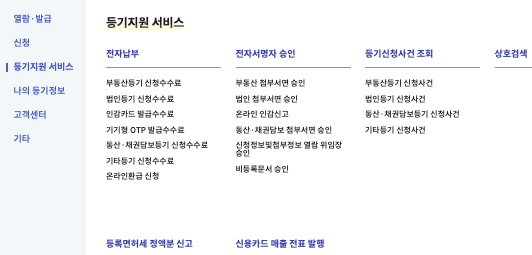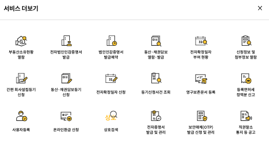 대법원 인터넷 등기소 주요 서비스