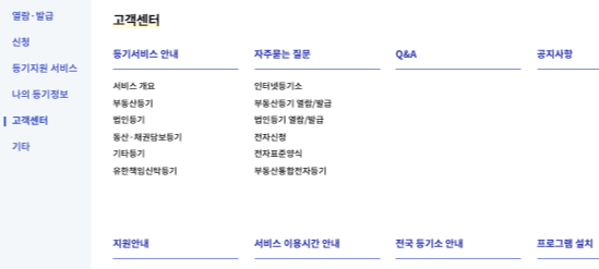대법원 인터넷 등기소 홈페이지 주요 구성