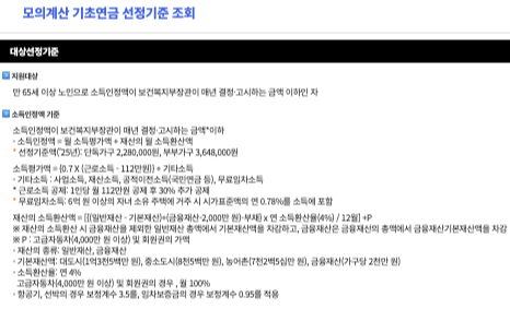 기초연금 모의계산 서비스는 내가 받을 수 있는지 여부와 예상 수령액을 간편하게 확인할 수 있는 편리한 서비스입니다.