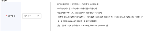 - 배우자 유무 체크: 혼인 여부에 따라 선정 기준이 달라집니다.