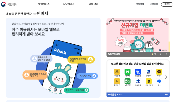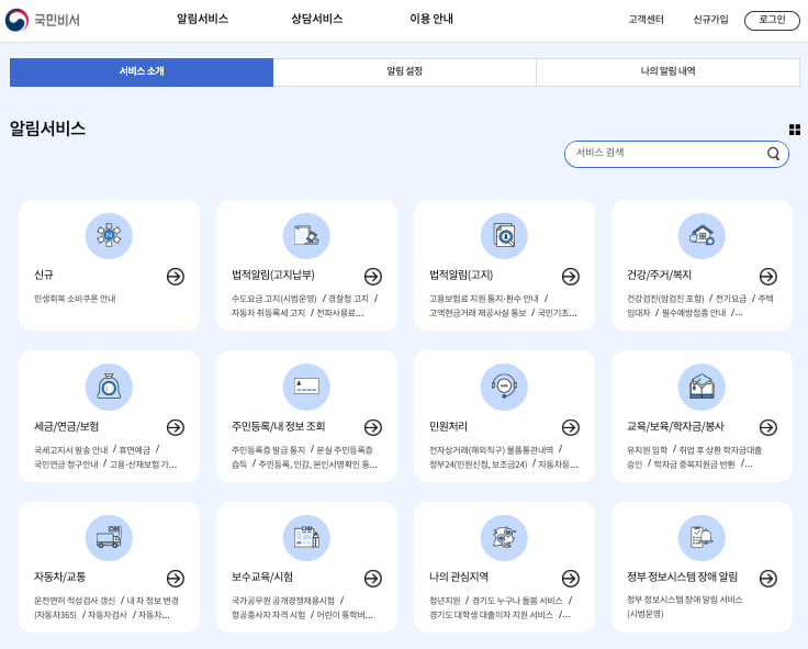 - 건강검진 · 여권 만료 · 세금 고지 등 생활 밀접 행정정보 사전 알림