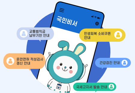 국민비서는 건강·세금·운전 등 생활에 필요한 정보를 앱이나 문자로 개인 맞춤형으로 알려주는 알림 서비스입니다.