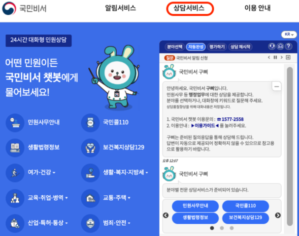 국민비서 누리집 상담서비스