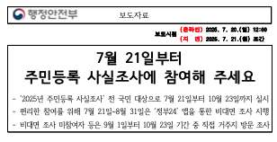 2025년 주민등록 사실조사는 전 국민을 대상으로 7월 21일부터 10월 23일까지