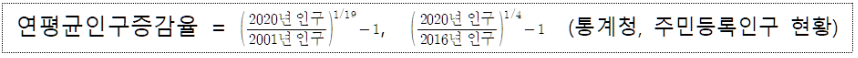 1. 연평균 인구증감률 (2001~2020, 최근 5년 등 비교)