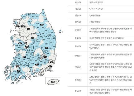 - 5개는 농어촌 외 도시형(예: 대전 동구 등)으로 분류되어 제외.