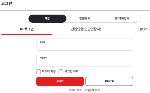 - 휴대폰 인증 또는 공동인증서 사용 가능