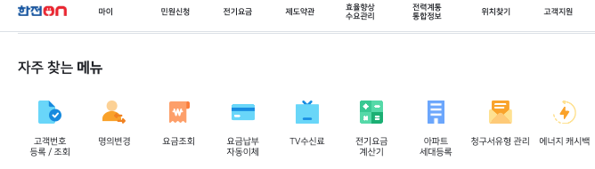 한전온 홈페이지 자주 찾는 메뉴