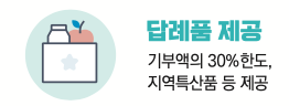- 기부금의 30% 이내에서 지역특산품 등 답례품 제공 가능