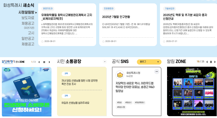 화성시청 홈페이지는 시민 누구나 행정 정보와 민원 서비스를 쉽고 편하게 이용할 수 있도록 마련된 공간입니다.