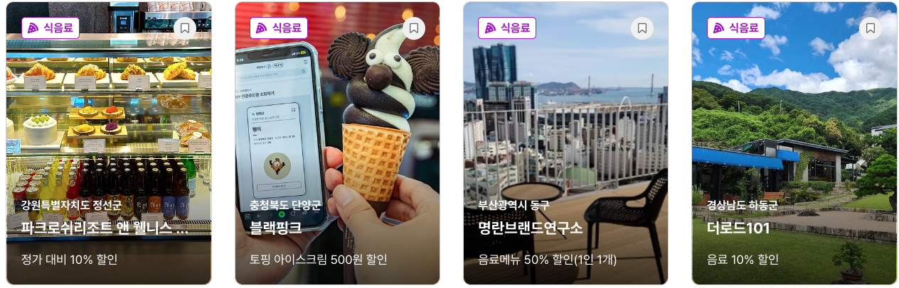 - 카페 및 베이커리 등 지역 가맹 음식점 10~30% 할인