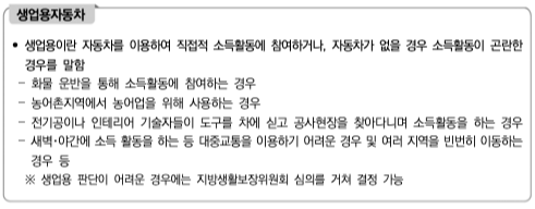 - 생계유지를 위해 반드시 필요한 차량 (예: 택시·트럭·화물차 등)