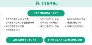 - 예방접종 증명서 등 다종류 증명서 발급