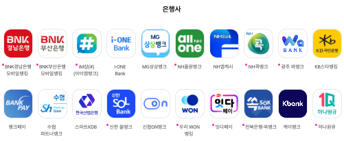 - 은행 앱: 국민은행과 신한은행 및 NH농협 등 주요 시중은행 지원