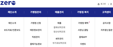 제로페이 홈페이지 주요 메뉴