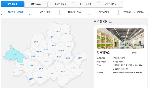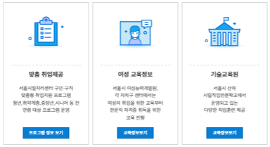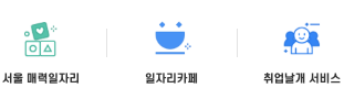 - 서울시 및 자치구와 공공기관에서 제공하는 일자리 공고 확인 가능