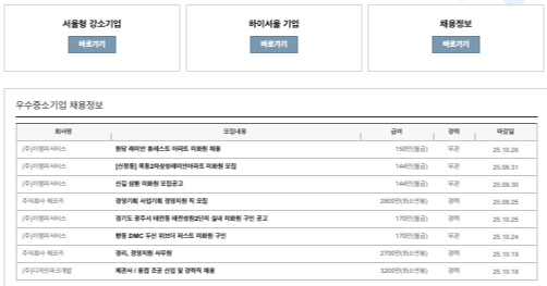 - 우수 중소기업 및 서울형 강소기업 등 특별 채용란 제공