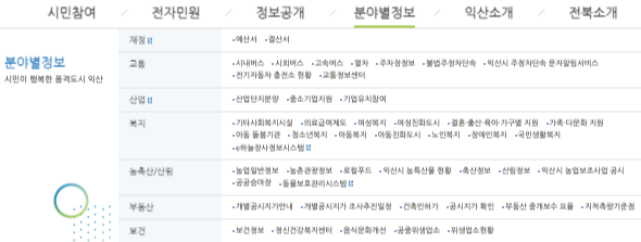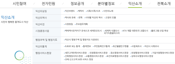 익산시청 홈페이지 주요 메뉴 구성