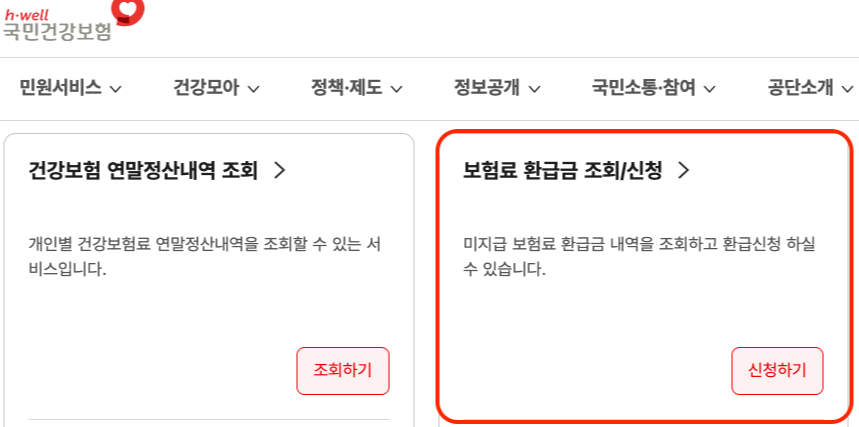 - 로그인 후 건보료 환급금 신청 메뉴 선택