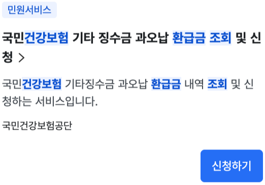- 건보료 관련 민원 서비스 중 '환급금 조회·신청' 선택