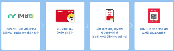 대구로 페이는 만 14세 이상이면 iM샵 앱이나 iM뱅크 영업점에서 수수료 없이 발급받을 수 있습니다.