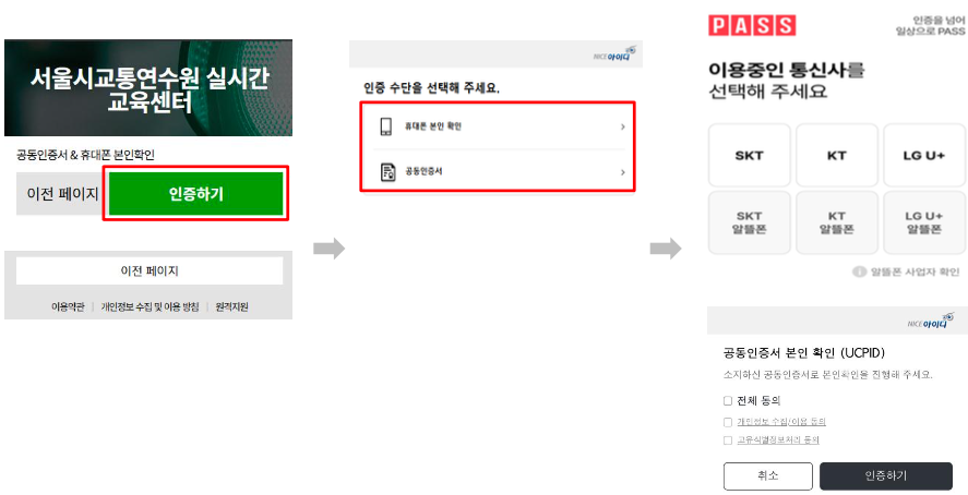 휴대폰 인증 또는 공공동인증서가 필요합니다.