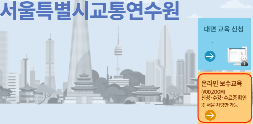 1. 서울시 교통연수원 홈페이지 접속 → '대면교육 신청' 선택