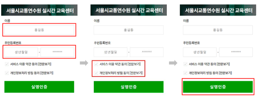 5. 성명·주민번호 입력 → 개인정보 수집 및 이용 동의 체크
