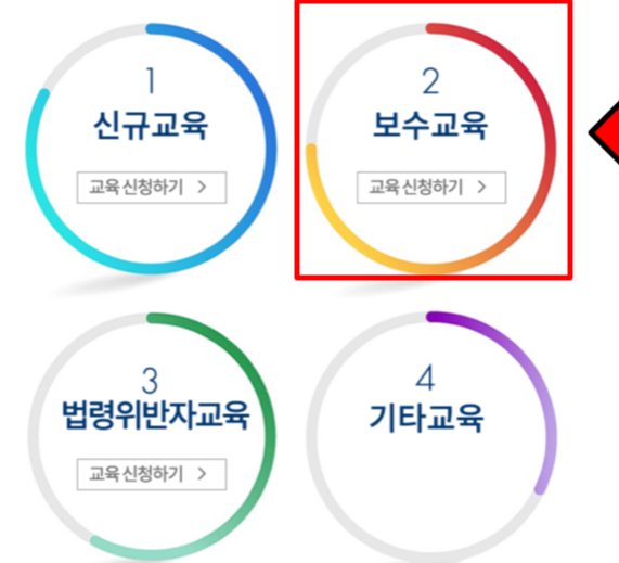 2. 교육등록 화면에서 '보수교육 교육 신청하기' 클릭