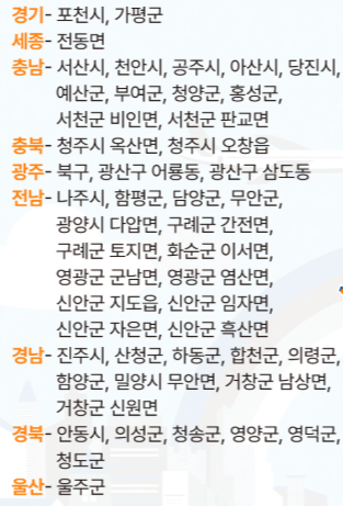 - 경기도·세종·충남·전북·전남·경북·경남·울산 등 포함