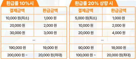 - 기존 일반 환급 10% + 특별재난지역 추가 환급 10% (총 20%)