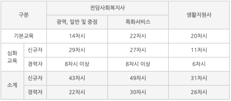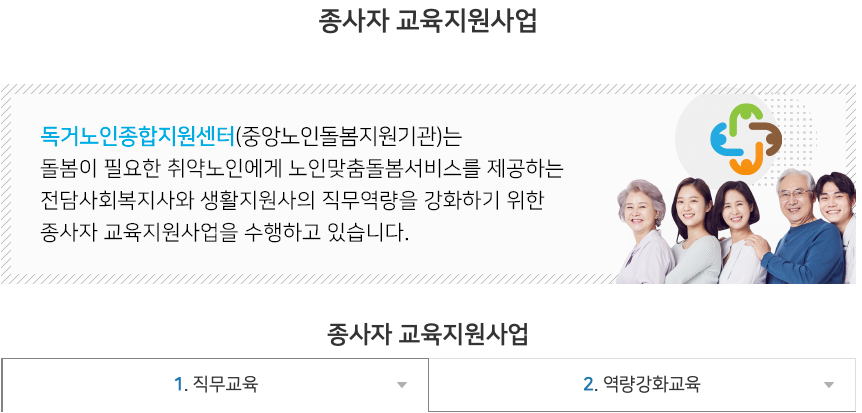 - 교육지원사업: 신규 종사자 및 경력 종사자를 위한 필수 직무교육 안내